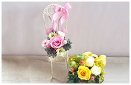ワイヤリング、テーピング、リボンワークなどの基礎を学びながら可愛いアレンジを制作します。